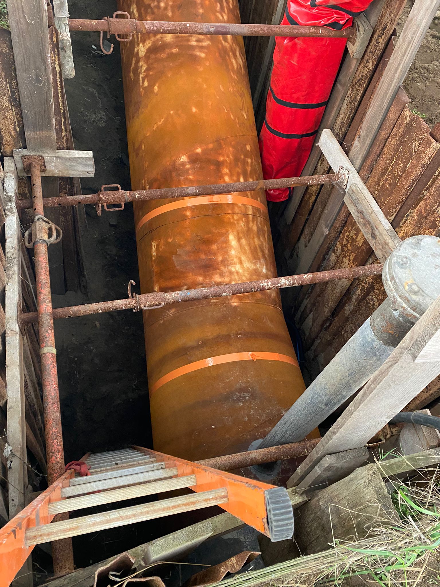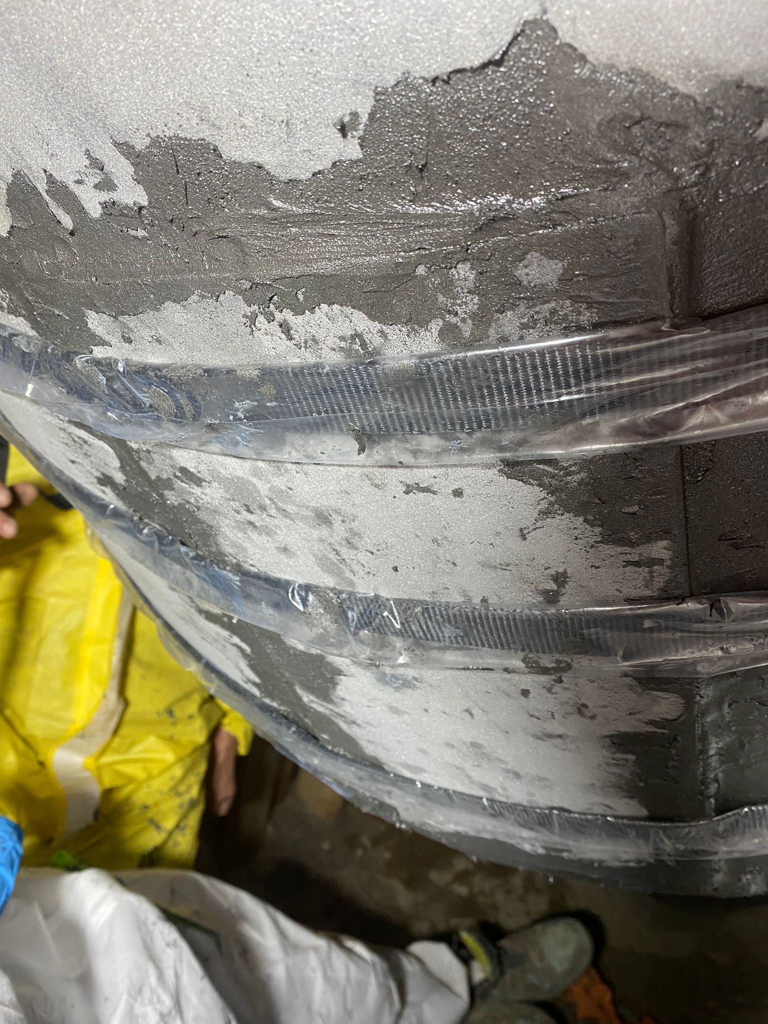 Due to the low temperatures outside, the isolated working area remained in place 2 days after job completion to ensure the good resin polymerisation. Hardness measurements were then performed and concluded the good achievement of this repair using REINFORCEKiT® 4D product. As recommended by 3X specialists, the client should apply a coating to protect the repair before closing the excavation. The design life for this composite reinforcement is planned for 10 years.