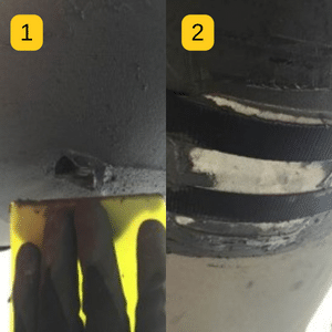 Because of the leaking defect the repair has been performed offline. An initial sandblasting has been made prior 3X intervention to get a good surface roughness (75-micron surface profile).