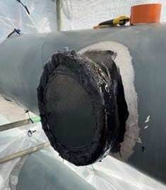 3. Composite reinforcement (made of fiberglass and 3X epoxy resin) was applied over the shell to reinforce the repair system.