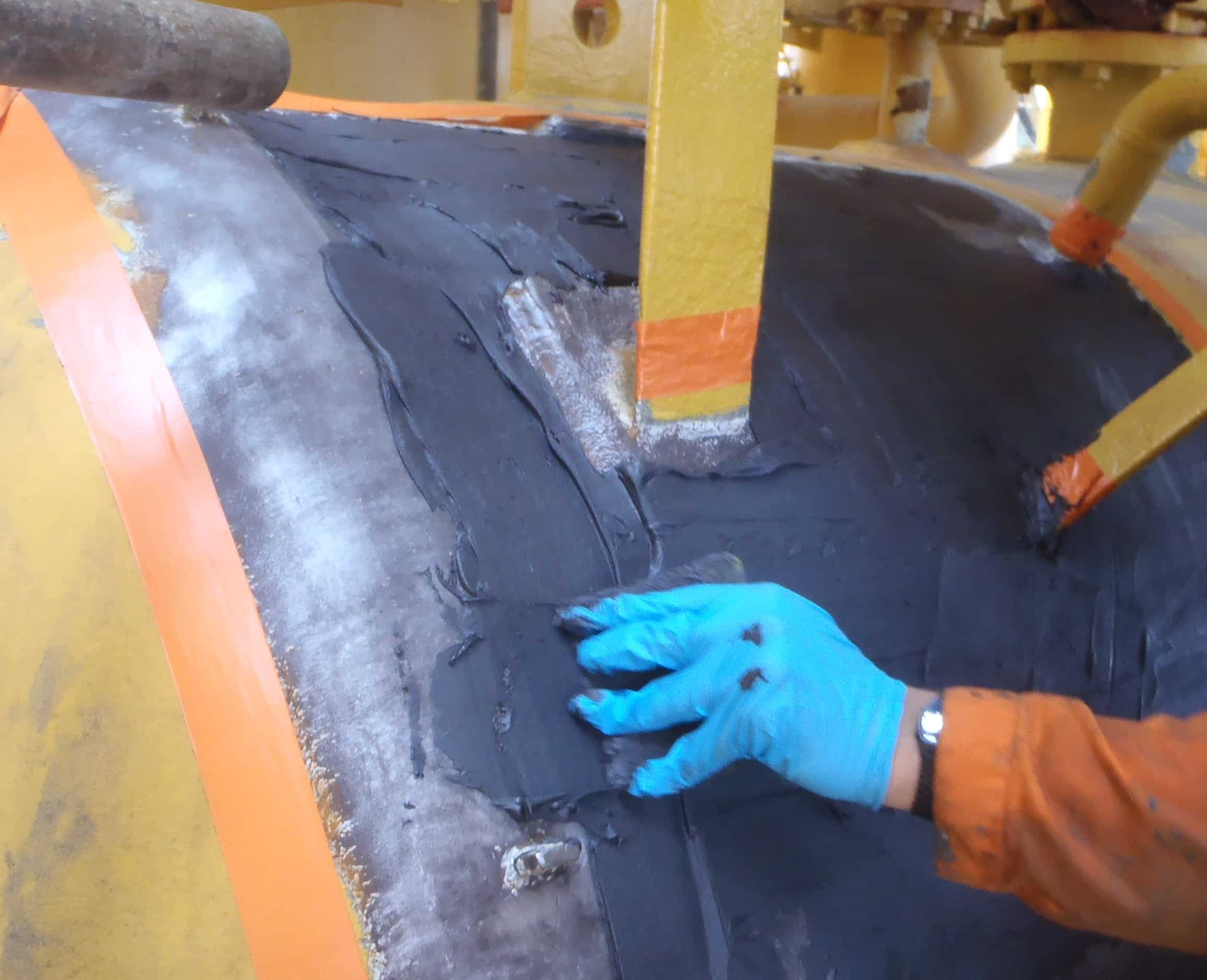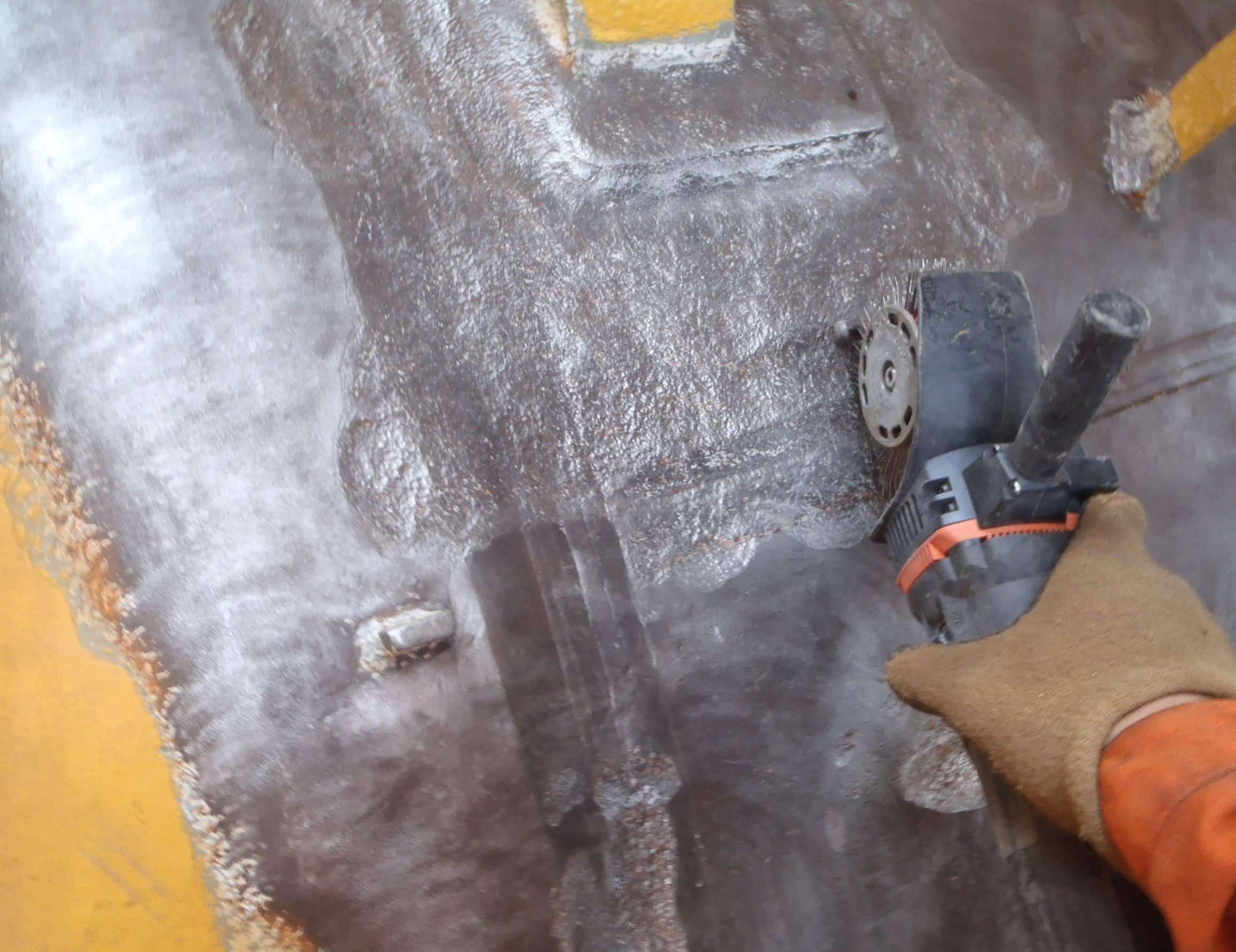 Before composite patching, dew point, moisture and surface temperature were checked and the surface was cleaned and degreased.