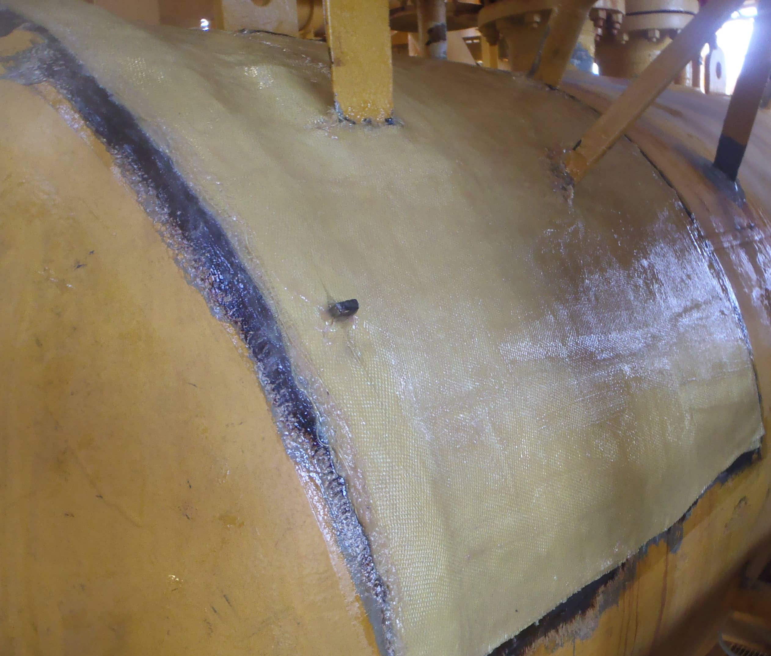 After analysis of the corrosion extent, calculations according to ISO 24.817 were performed, concluding that 4 layers were needed to reinforce the reboiler. Because of the specific reboiler design, it was decided to use REINFORCEKiT® PATCH product, specially designed for tank & vessel repair i.e. 4 Kevlar®patches size 1032x1032mm for this case.