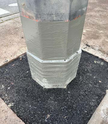 This project was performed successfully on an octogon pole and demonstrates the adaptability of our products and our teams to repair any kind and shape of structural poles dedicated for transportation network. The job was completed without stopping traffic. The structure is now reinforced for 20-year minimum.