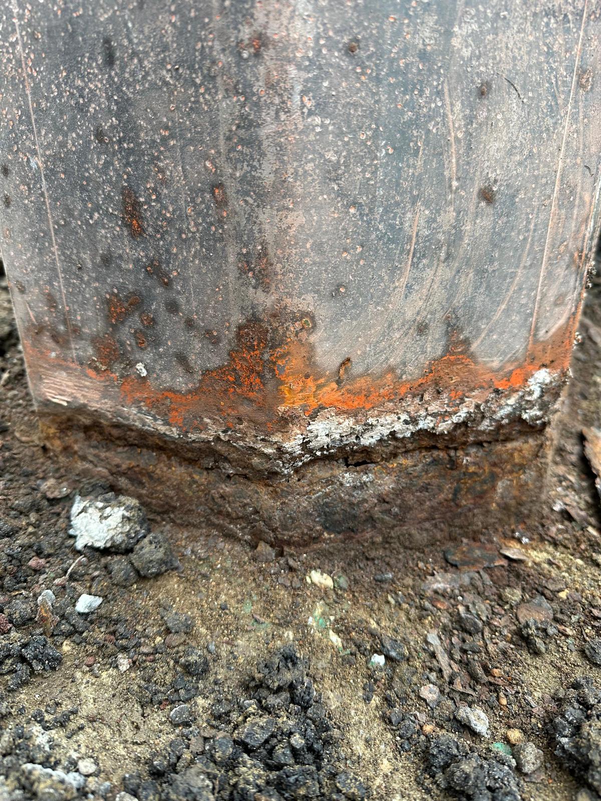 Before performing the reinforcement, the 1st step was to proceed to a disbursement of the concrete base before reinforcing the pole.