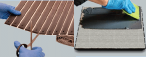 - ROLLERKiT® PREPARATION. Cutting of the necessary number of pads to be installed. Eight pads were necessary to protect 8” pipeline and 12 pads for 14” pipeline. F3X8 filler was mixed and applicated on the support and on the ROLLERKiT® (fiber glass side).