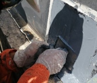 - Metallic plate was applicated over the defected area using a thick layer of F3X8 filler to seal the leak.